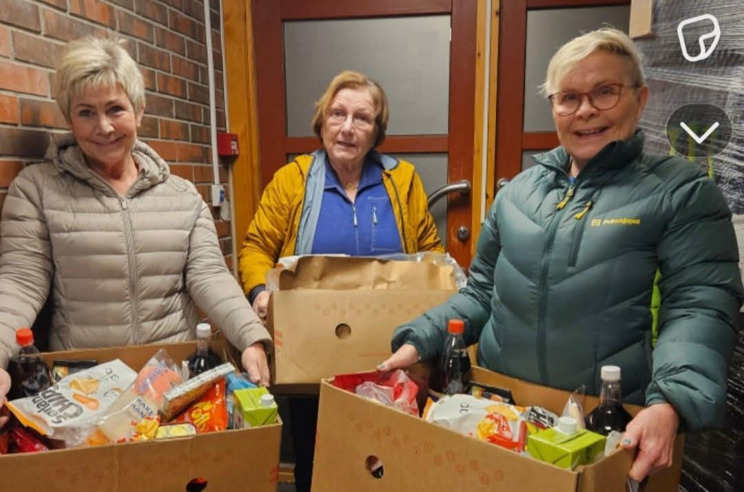 Bygdekvinnelaga i Valle og Hylestad er klare med matkassar før jol. Her eit knippe av dei i sving. Frå venstre: Elin Viki, Kirsten Bråten Berg og Torbjørg Helle.I fjor vart det delt ut 18 matkassar gjennom ordninga, ei fin hjelp til dei som treng det. Det er ingen spesielle krav knytt til å få ein matkasse, anna enn at ein må vere busett i Valle kommune.