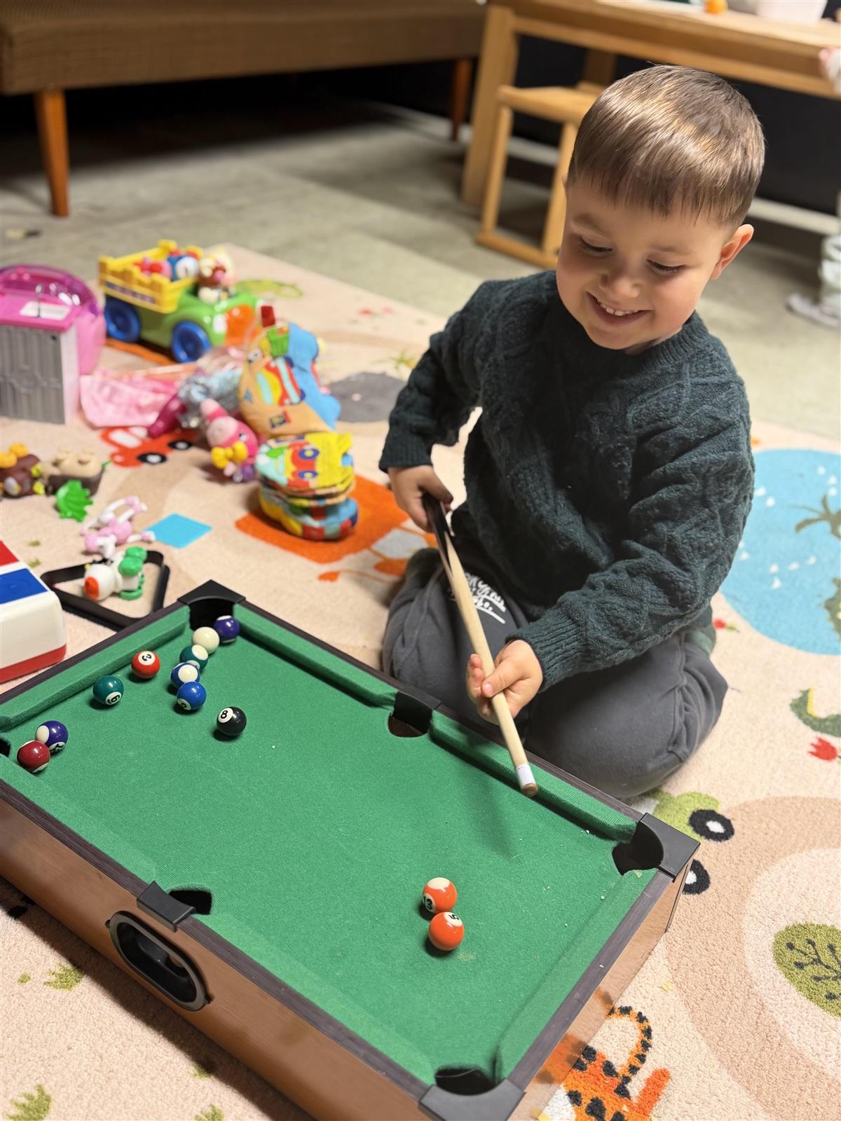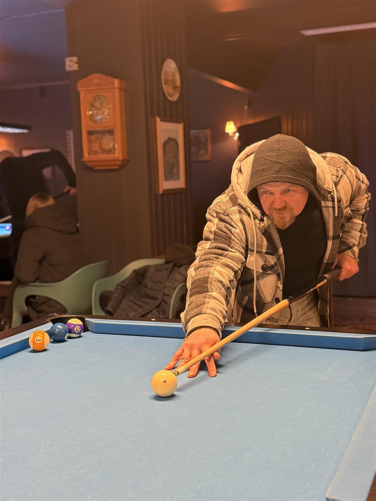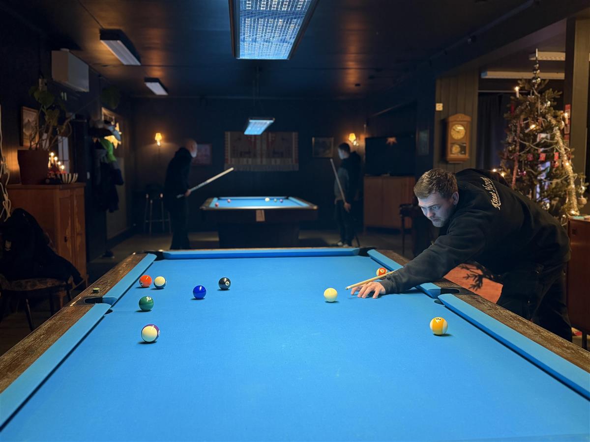 Maksym Vlasiuk i sving i biljardklubben i Valle.