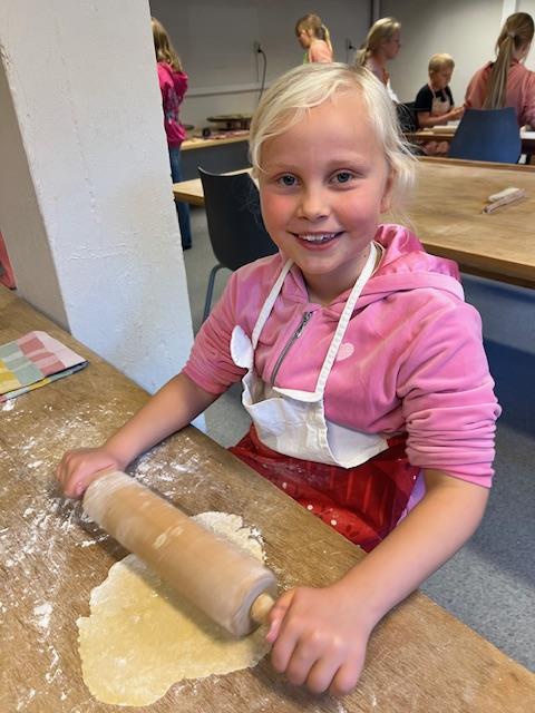 – Så lærer dei å kjevle, bruke fløyg og steike på takke. Dette er eit sers populært tilbod, stemninga rundt bakstreborda er ypperleg, slår SFO-leiar Ingunn Bratteland fast.