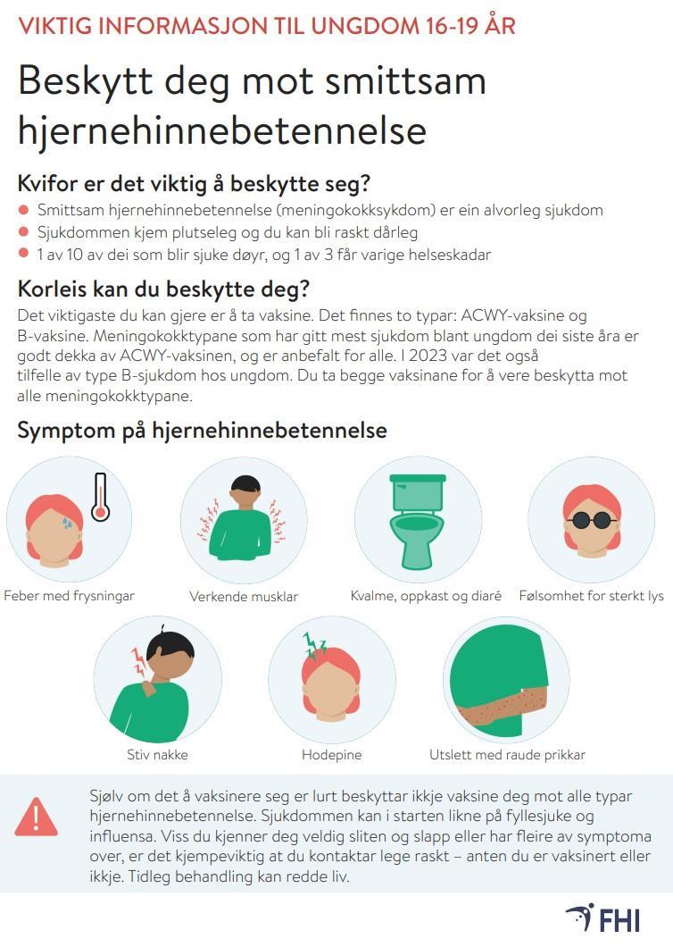 Gratis vaksine mot hjernehinnebetennelse for alle mellom 16-19 år