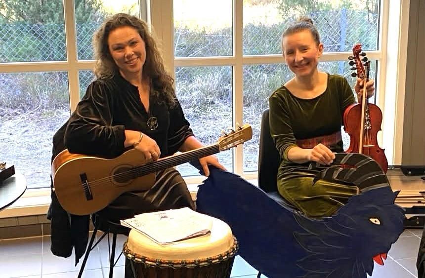 Inger Lise Stulien og Anna Slaby Driel med «Dommelidei» i barnehagar og småskular i heile øvre Setesdal!