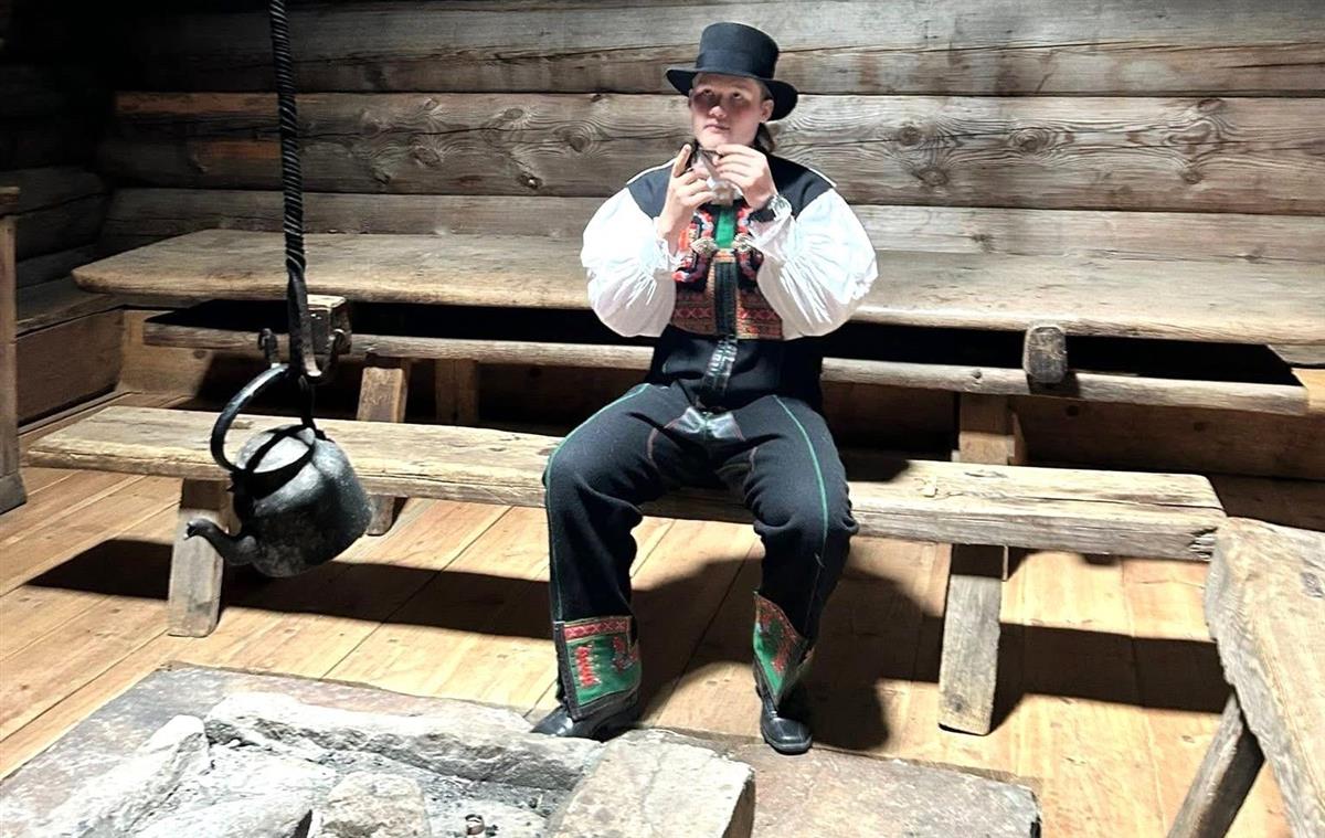 Ole Christian Carlsen som sommarguide i Setesdalsmuseet. No lyser museet etter guidar til årets sommar.