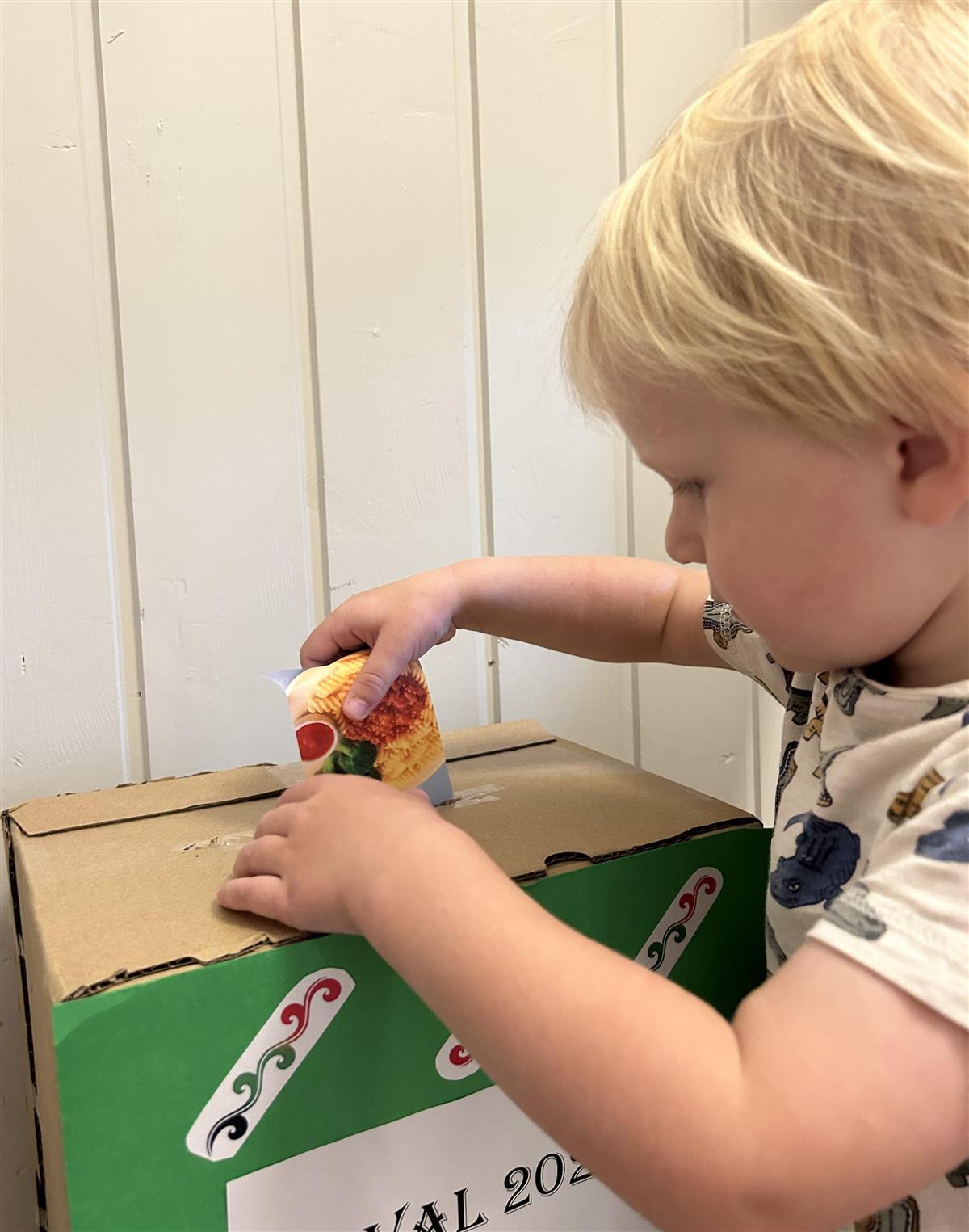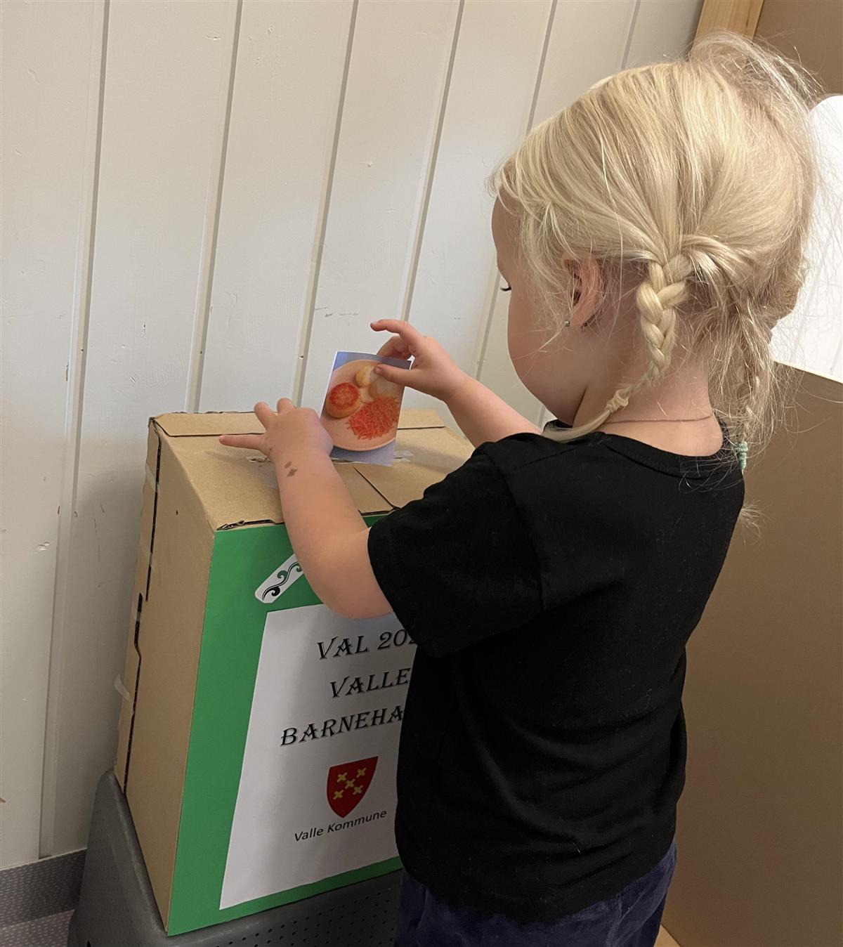 Det vart rigga til eige vallokale, komplett med konvoluttar og røysteboks. Så handla ikkje valet om formueskatt, helsevesen og alt det ein elles høyrer om - borna fekk bruke demokratiske verktøy for å bestemme kva som skulle stå på middagsmenyen den neste veka. Valet stod mellom pasta, fiskekaker og vårrullar.